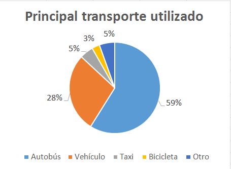 - El autobús (59%) y el vehículo particular (28%) son los dos medios de transporte más utilizados.